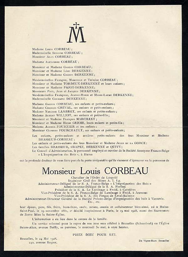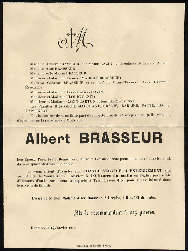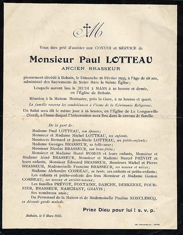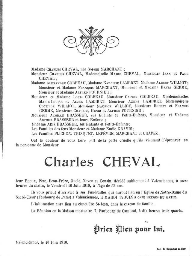 1890 : Michel Lotteau 1890 : Charles Cheval 1891 : Marie Aimée Cheval 1898 : Jenny Brasseur 1900 : Madeleine Gravis 1905 : Edouard Brasseur 2 1931 : Francine Germe 1931 : Monique Cheval 1937 : Philippe Cruyt 1941 : Louis Corbeau 2 1947 : Pierre Marie Brasseur 1957 : Bernadette Baclet 1973 : Anne Brasseur 1976 : Marion Willem