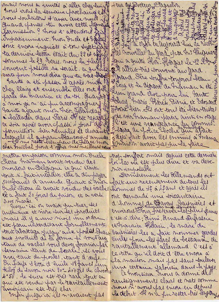 On ne sait si tous les "invités" eurent droit à une lettre aussi bien tournée. Parmi les personnes exilées ce jour-là, trois cents (hommes et femmes) venaient de la région du nord et parmi elles, deux enfants d'Achille Brasseur qui avait alors soixante-quinze ans : son fils Pierre, pourtant père de deux enfants en très bas âge, et sa fille Aimée, pourtant veuve avec charge de famille. Parmi elles encore, Marguerite Brasseur, fille d'Arthur et nièce d'Achille, par conséquent cousine germaine des précédents... Comme on peut le constater, il ne s'agit pas uniquement de notables et de personnages de marque. Une passionnante lettre de Jenny Brasseur, écrite de Paris au moment de cet événement (et qui nous renseigne également sur les conditions de vie au Gard pendant la guerre), nous montre que certains étaient pris en otage à titre de représailles... |