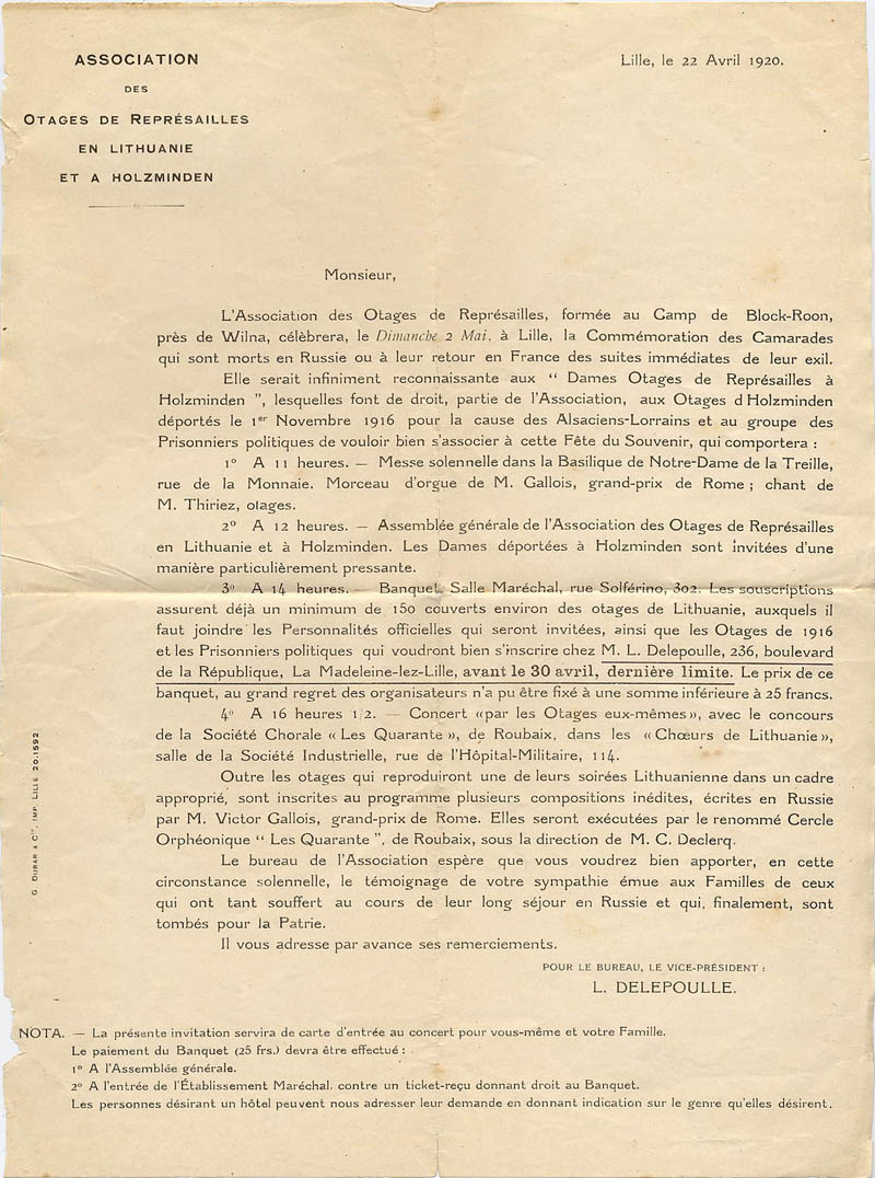 Hélas, cette deuxième déportation d'otages civils s'achève aussi dans une grande tristesse : vingt-six otages ne sont en effet jamais revenus du pays balte, ayant succombé aux affreuses conditions de détention et au manque de tout. La famille Brasseur a également compté parmi ses membres un otage de représailles en Lituanie en la personne de Henri Gravis, fils de Lucia Brasseur-Gravis et époux de Blanche Carneaux, qui par bonheur a pu revenir au pays après cette cruelle épreuve...