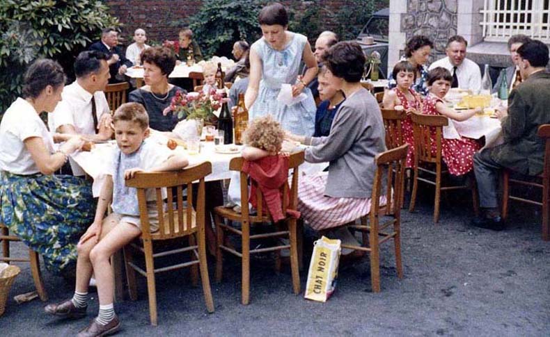 | En 1961, Michel et Niny Brasseur décident d'organiser un pique-nique dans le jardin de leur maison, rue de la Rianderie à Marcq en Barul. Et c'est aussi l'occasion de faire les premières photos en couleur de ces réunions de famille. |