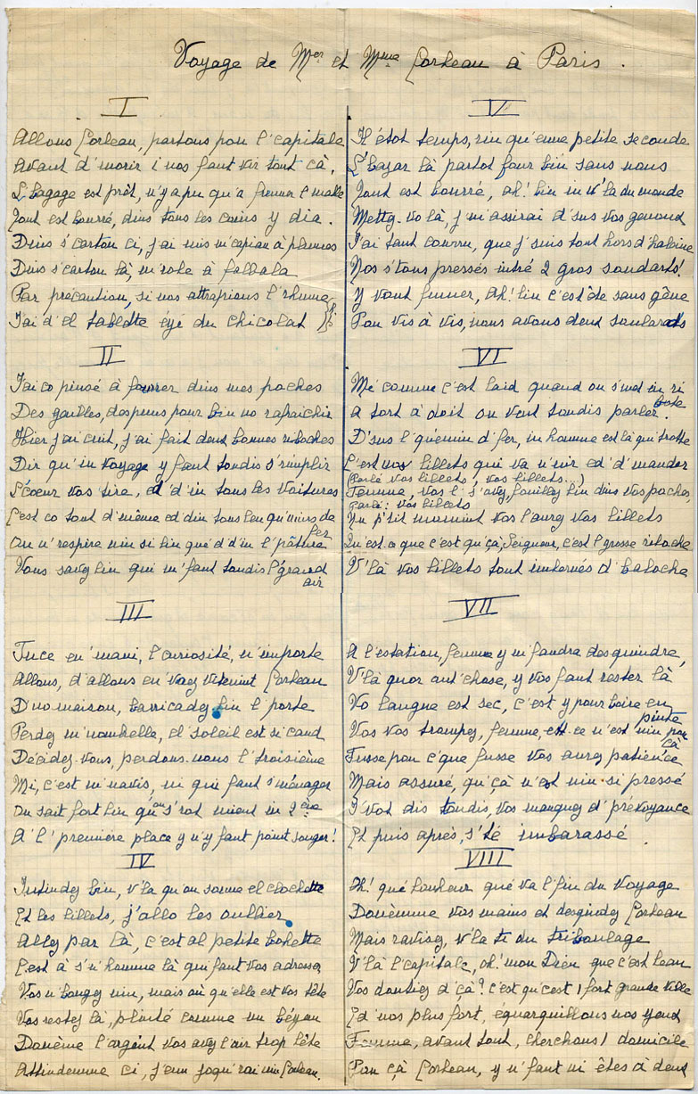 Qui nous dira quel fut l'auteur de cette fantaisie et de quand elle date ? Ou encore de quand date ce fameux voyage des époux Corbeau à Paris ? Voici en tout cas ce texte, considéré comme l'hymne national des Corbeau qu'il faut, parait-il, chanter sur l'air de «T'en souviens-tu»...