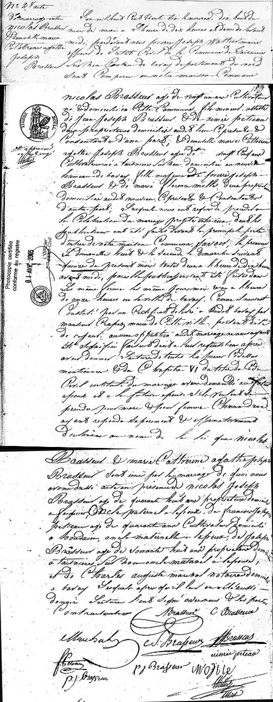 Voici donc des documents tout droit issus des fonds d'archives départementales ou municipales. Nous les devons encore une fois à notre cousine Marie-Hélène Germe, qui, non contente d'effectuer un gros travail de recherche généalogique, a bien voulu mettre à notre disposition des documents de premier ordre concernant la famille.