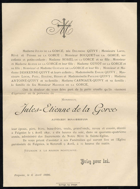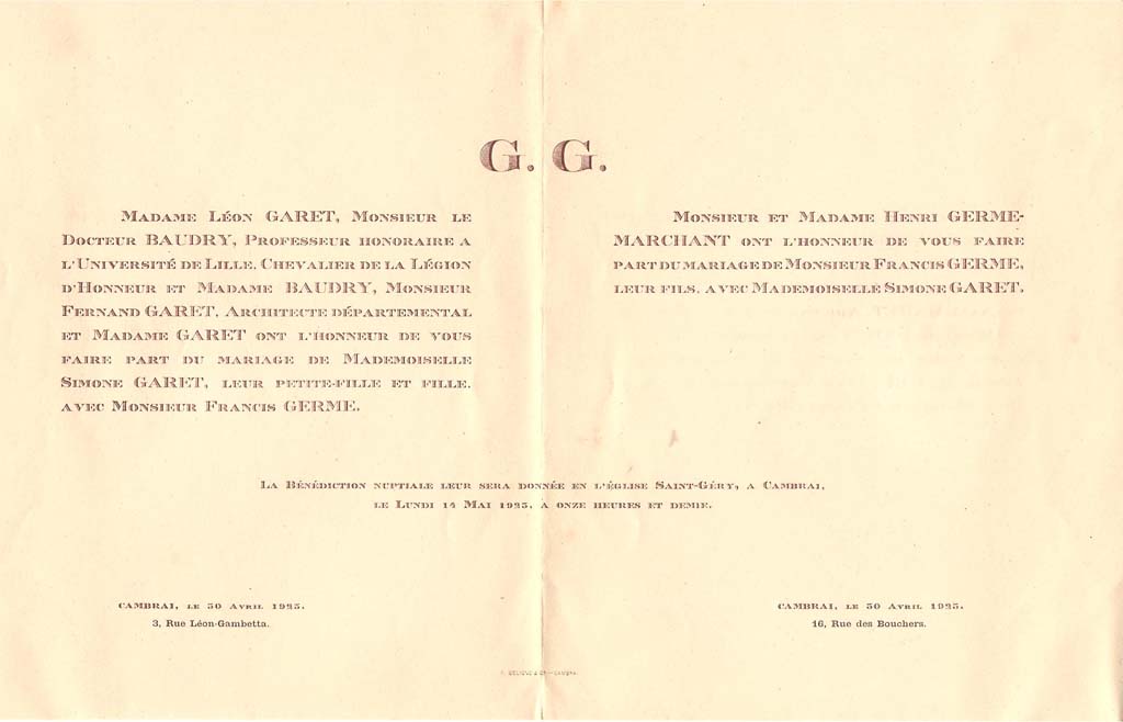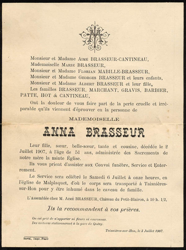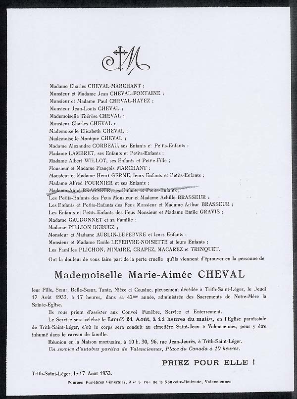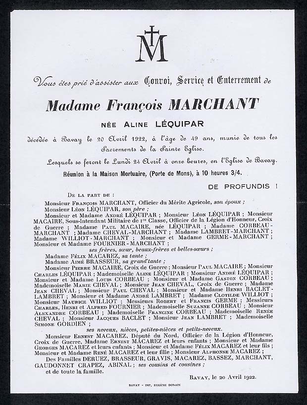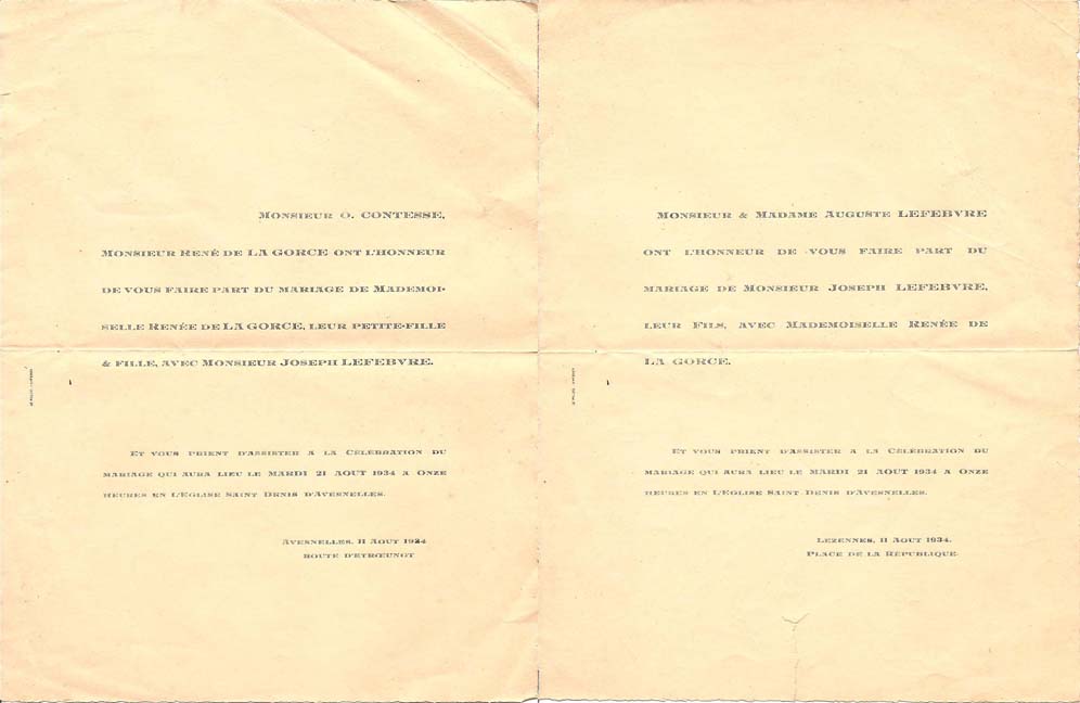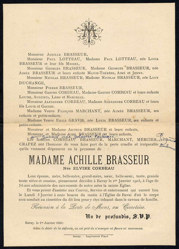 Nous avons placé dans le premier chapitre de la rubrique « Documents » des textes écrits pour la famille et pour des circonstances précises ou déterminées. Mais il y a beaucoup d'autres documents dans les papiers familiaux, à commencer par ce qu'on a l'habitude d'appeler les petits papiers. On regroupe sous ce nom des choses en vrac, avec quand même une prédilection pour tous ces papiers chargés d'annoncer les événements de la vie : les faire-parts. Cette rubrique va donc regrouper tous ceux que nous avons pu collecter jusqu'à présent. Naturellement, vous pouvez toujours proposer des ajouts ou nous suggérer d'autres idées dans ce domaine.