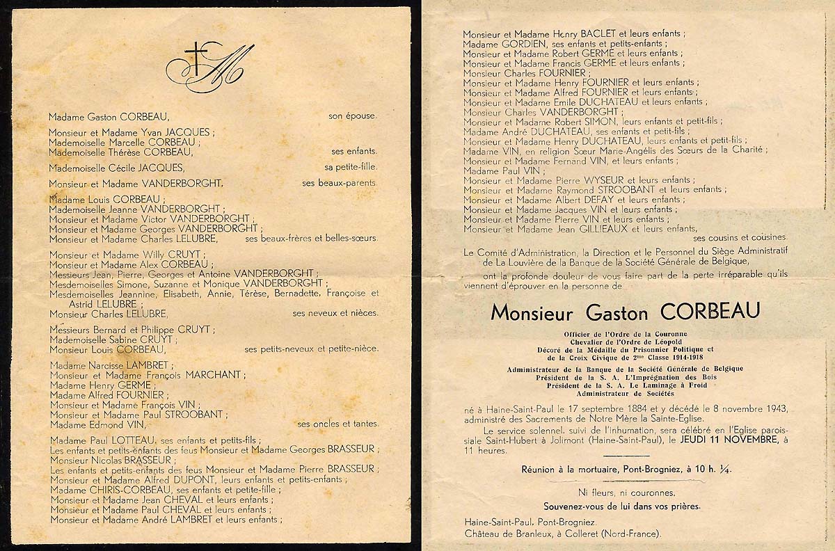 1890 : Michel Lotteau 1890 : Charles Cheval 1891 : Marie Aimée Cheval 1898 : Jenny Brasseur 1900 : Madeleine Gravis 1905 : Edouard Brasseur 2 1931 : Francine Germe 1931 : Monique Cheval 1937 : Philippe Cruyt 1941 : Louis Corbeau 2 1947 : Pierre Marie Brasseur 1957 : Bernadette Baclet 1973 : Anne Brasseur 1976 : Marion Willem