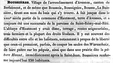 En 1851, paraissait chez Levecque, libraire de Maubeuge, un ouvrage intitulé "Recherches historiques sur Maubeuge, son canton et les communes limitrophes, avec des notes sur les villages de l'ancienne prévoté de cette ville, ainsi que tous ceux qui, situés hors de cette prévoté, se rattachaient toutefois aux monastères d'Hautmont et de Maubeuge par des biens, des bénéfices et des droits divers". Son auteur, nommé Zéphir-Joseph Pierart, se disait "ex directeur de l'école primaire supérieure de Maubeuge, membre de la Société archéologique de l'arrondissement d'Avesnes et de la Société des sciences, arts et lettres du Hainaut"...